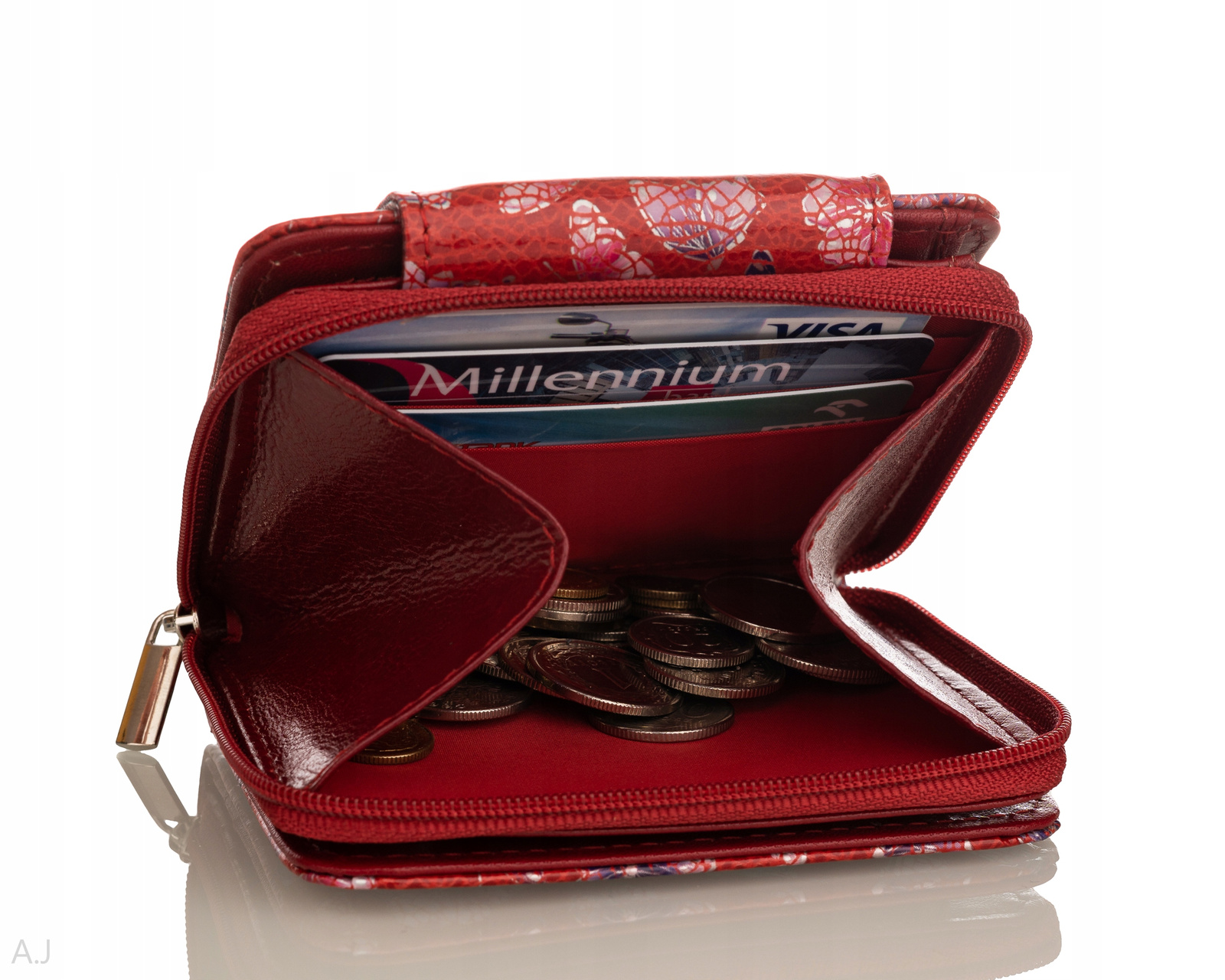Portfel damski wykonany w całości ze skóry naturalnej, uszyty w Polsce przez polskiego producenta. To bardzo rozbudowana wersja, która pomieści bilon, banknoty, karty i dokumenty (14 szt.). Portfel posiada kieszonkę na bilon zamykaną na zamek, łącząc elegancję z funkcjonalnością.