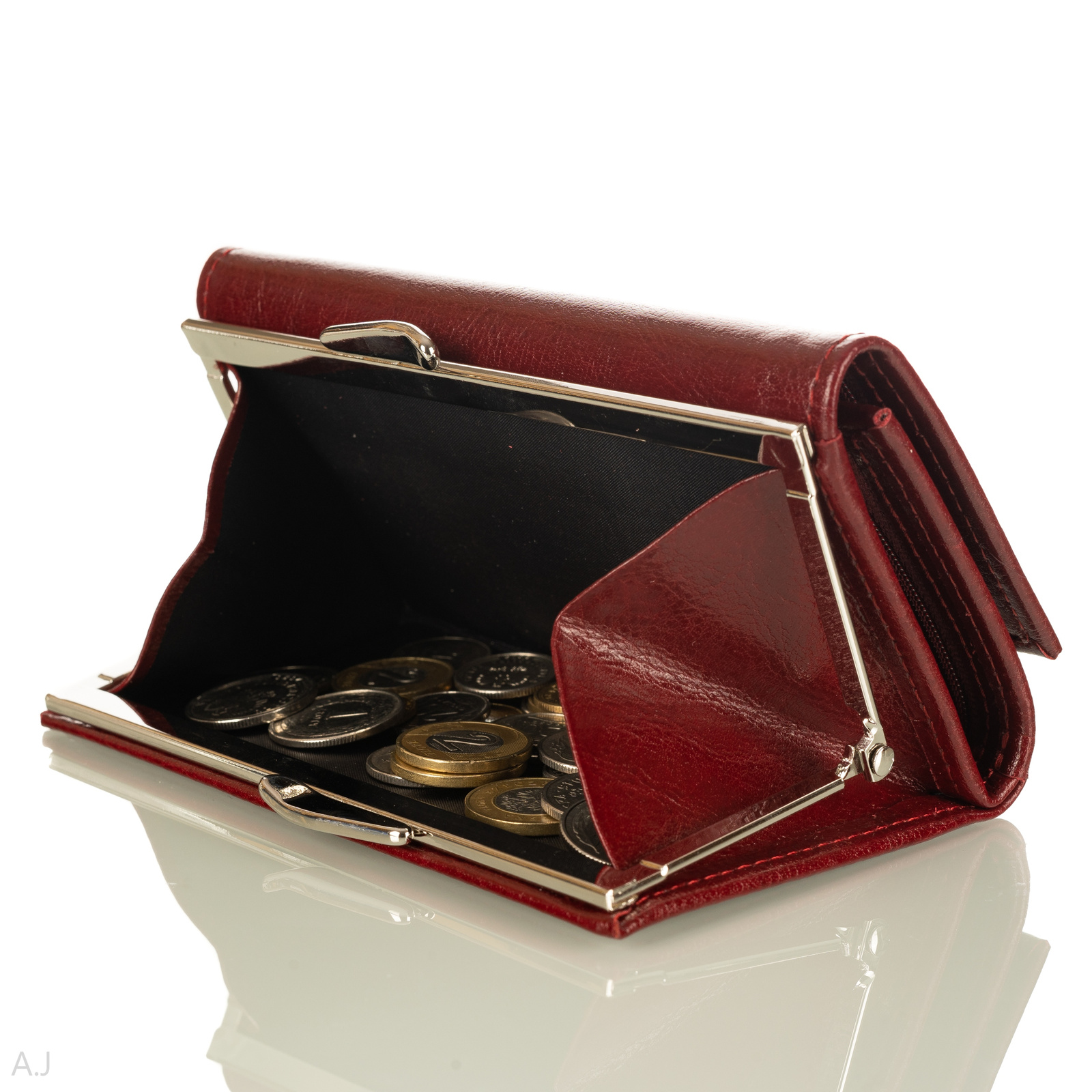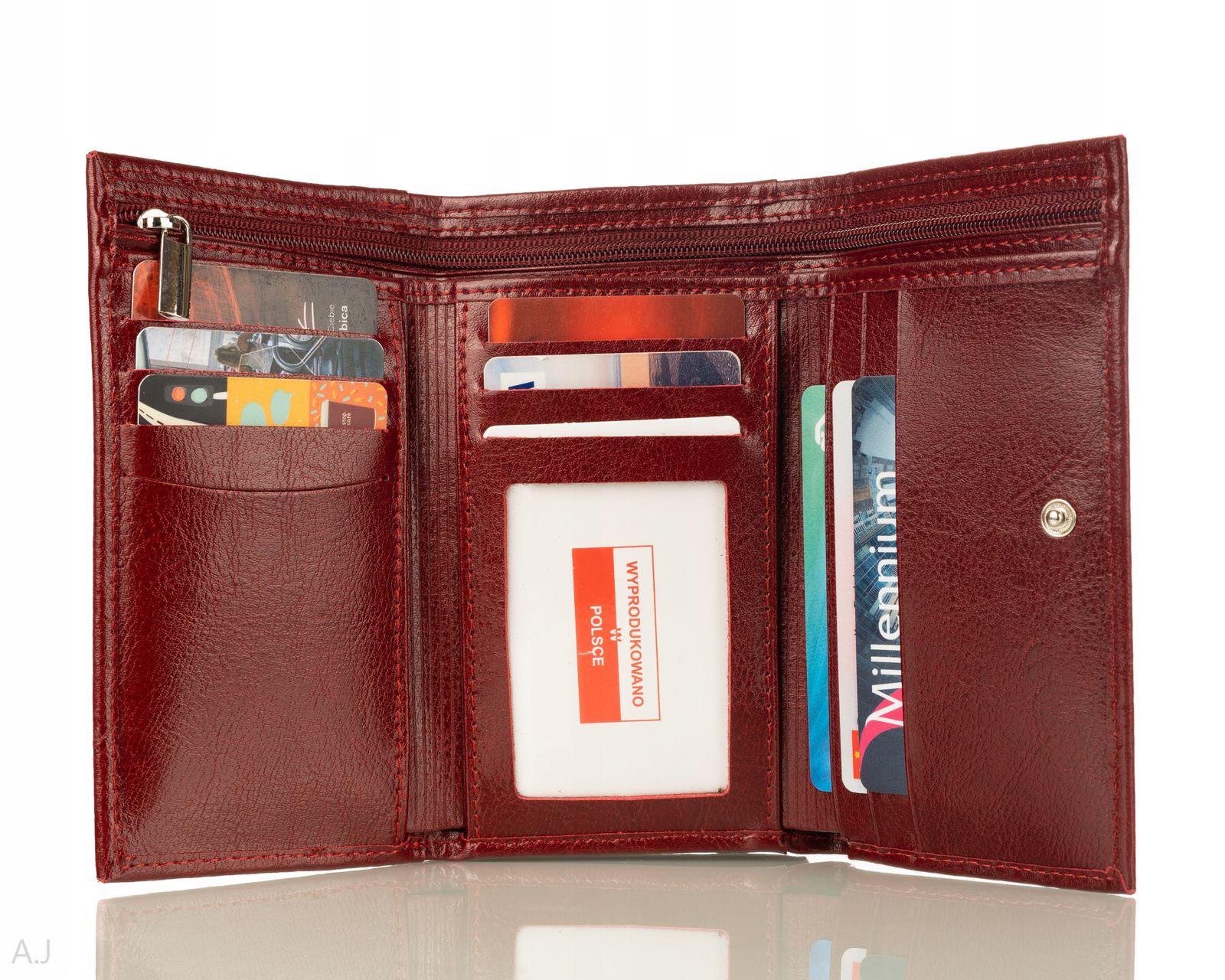 ŚREDNIEJ WIELKOŚCI PORTFEL DAMSKI WYKONANY ZE SKÓRY NATURALNEJ LAMINOWANEJ ODPORNEJ NA ZARYSOWANIA.PORTFEL ZOSTAŁ WYPRODUKOWANY W POLSCE PRZEZ POLSKIEGO PRODUCENTA.KIESZONKA NA BILON ZAMYKANA BIGIELKIEM.