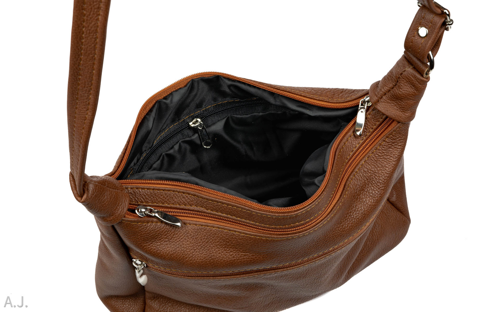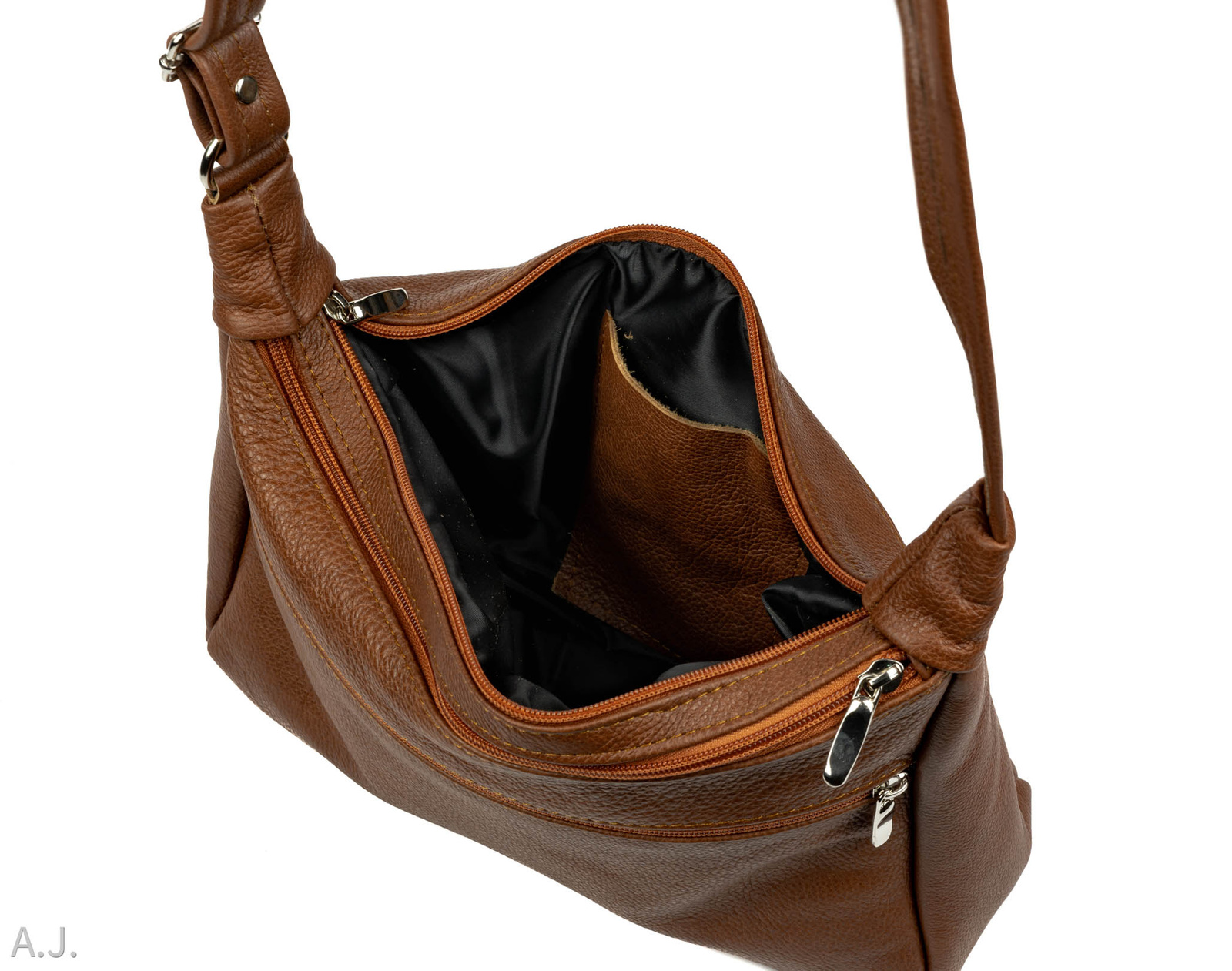 TOREBKA POSIADA 2 KOMORY- 3 KIESZONKI ZAMYKANE SUWAKIEM-KIESZONKĘ NA TELEFON- DŁUGI , REGULOWANY , SKÓRZANY PASEK