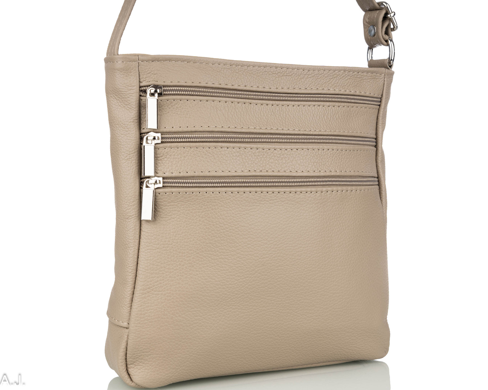 Damska listonoszka z miękkiej skóry naturalnej, wykonana w Polsce. Posiada jedną główną komorę zamykaną suwakiem, pięć kieszonek na suwak, kieszonkę na telefon oraz długi, regulowany, skórzany pasek. Funkcjonalna i stylowa – idealna na co dzień.